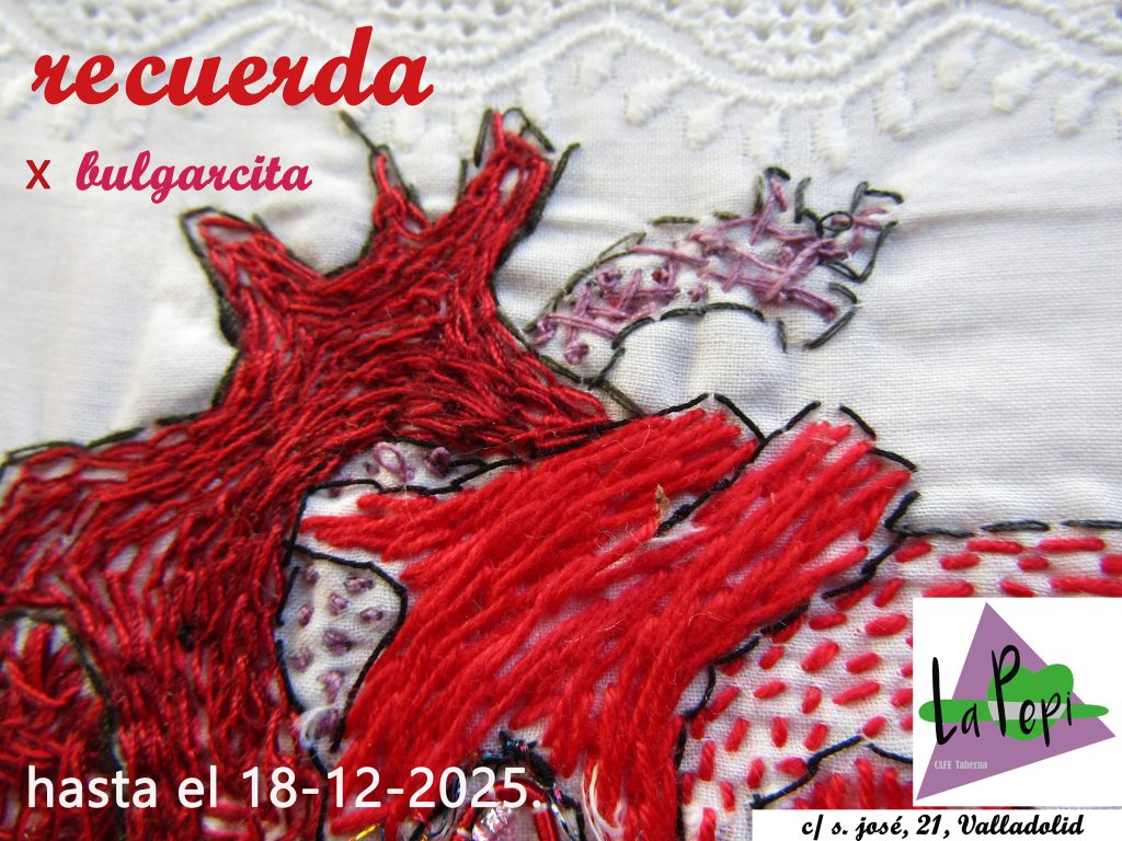 Recuerda es una muestra de dibujos bordados en forma de corazón anatómico, más metafóricos que realistas.